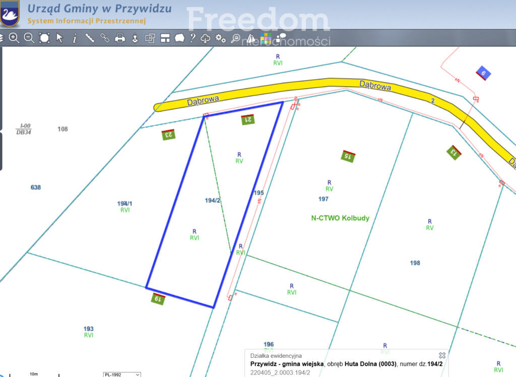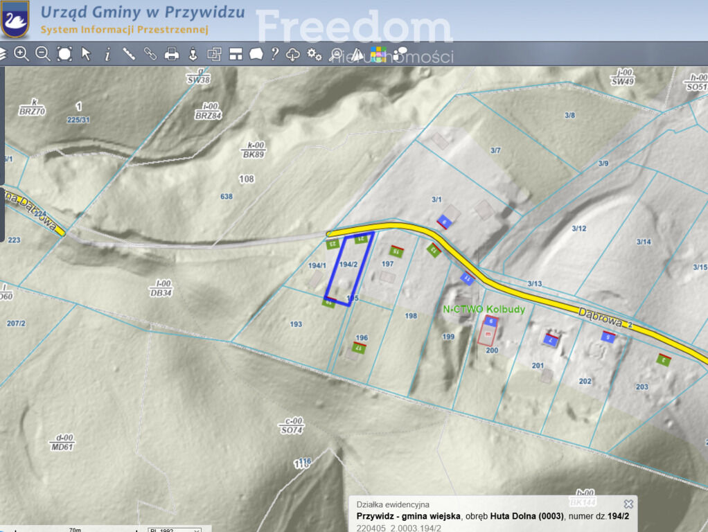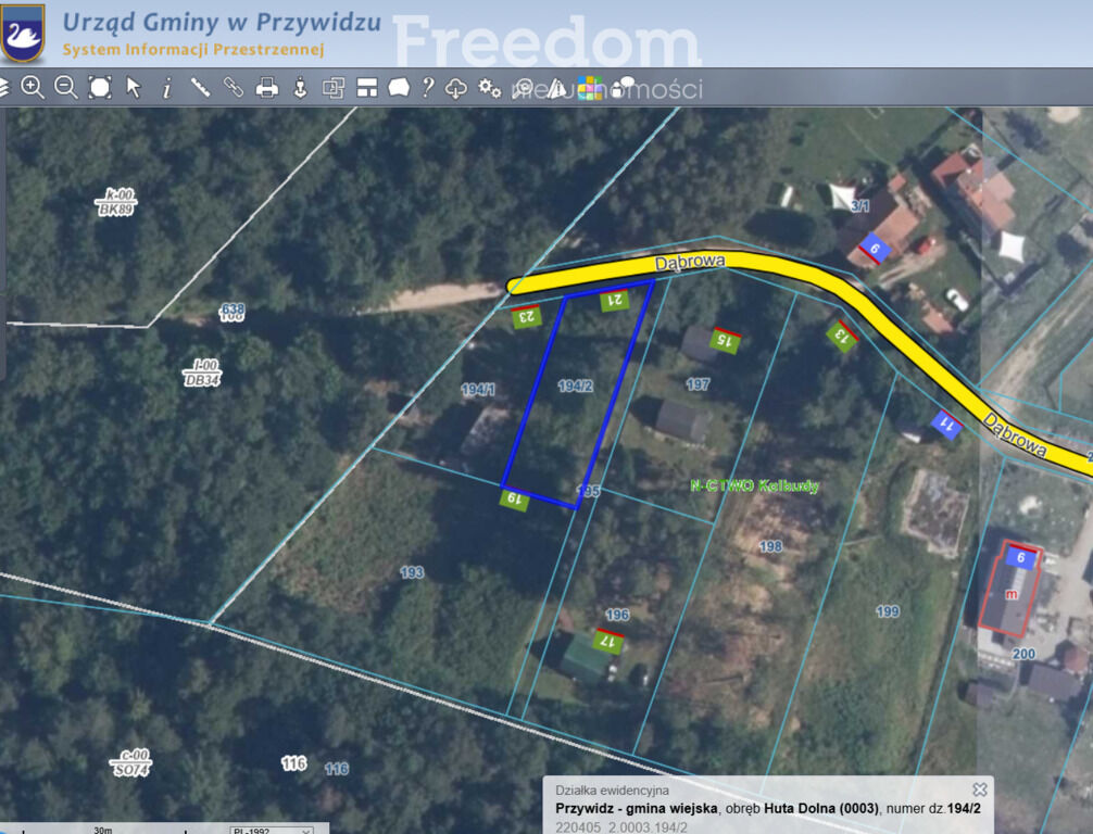 - usytuowanie działki – Huta Dolna, ul. Dąbrowa 21, gmina